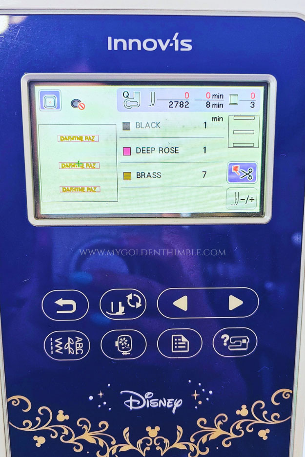 Also, make sure this rectangle is set to a different color than your text—this allows your machine to stop after stitching it.